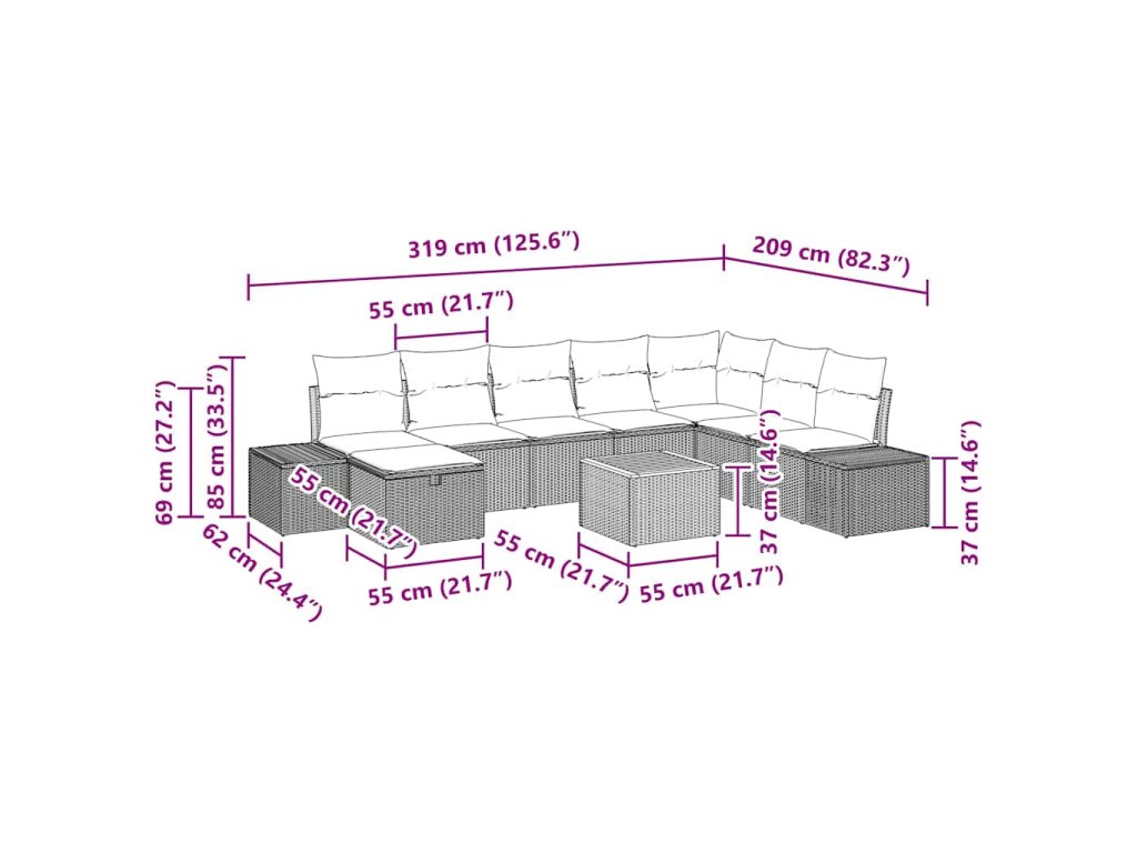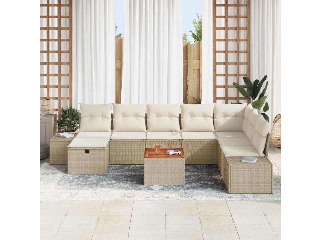 Sada zahradních pohovek s polštářem 9 pcs Béžová Poly ratan 3359610