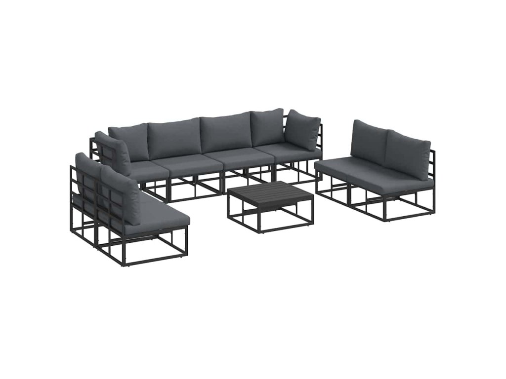 Sada zahradních pohovek s polštářem 9 pcs Černá Hliník 3378853
