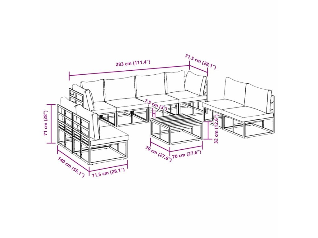 Tato zahradní pohovková souprava představuje moderní jednoduchost svými čistými liniemi a funkčním designem, což ji činí ideálním doplňkem pro jakoukoli zahradu nebo terasu. Vyrobená z prémiových materiálů, tato souprava nabízí vizuálně atraktivní vzhled, který doplňuje různé venkovní prostředí, zvyšující jak styl, tak pohodlí. Díky modulární konfiguraci si uživatelé mohou upravit a uspořádat soupravu podle svých individuálních potřeb a prostorových požadavků, čímž vytvoří útulnou a přívětivou venkovní seating plochu.