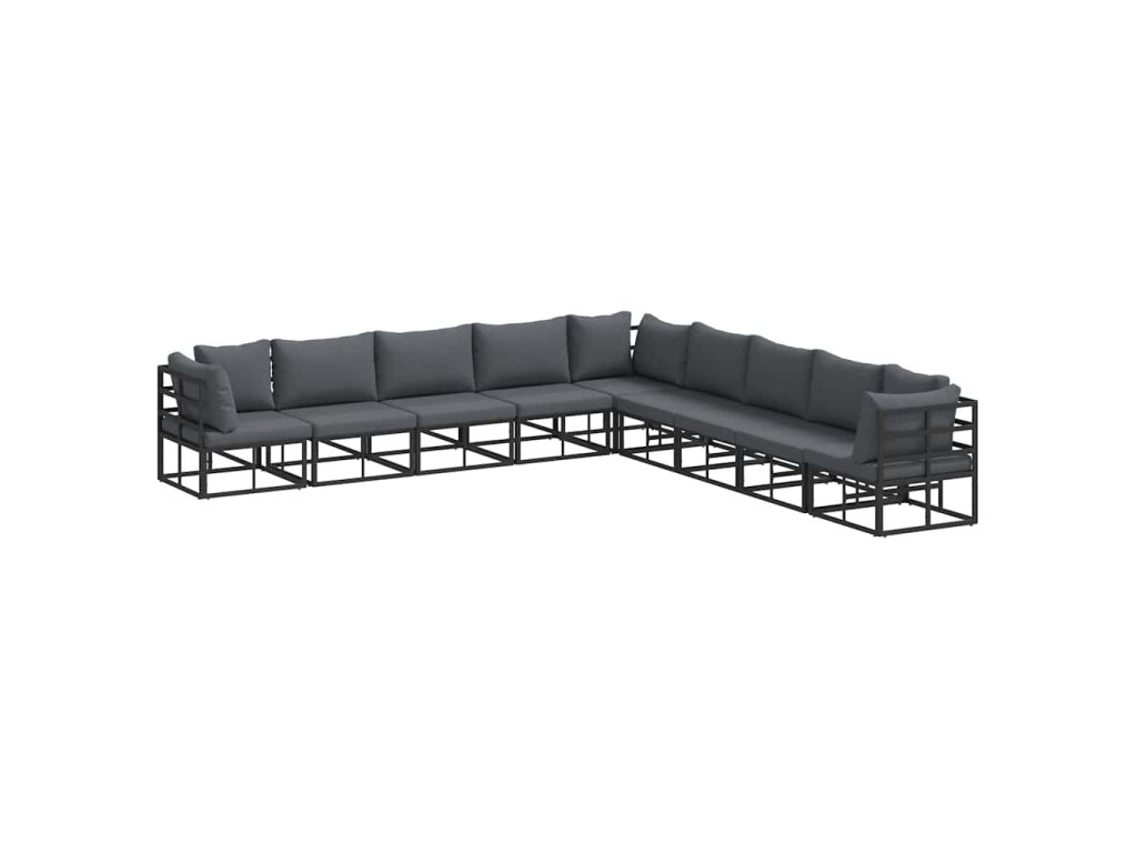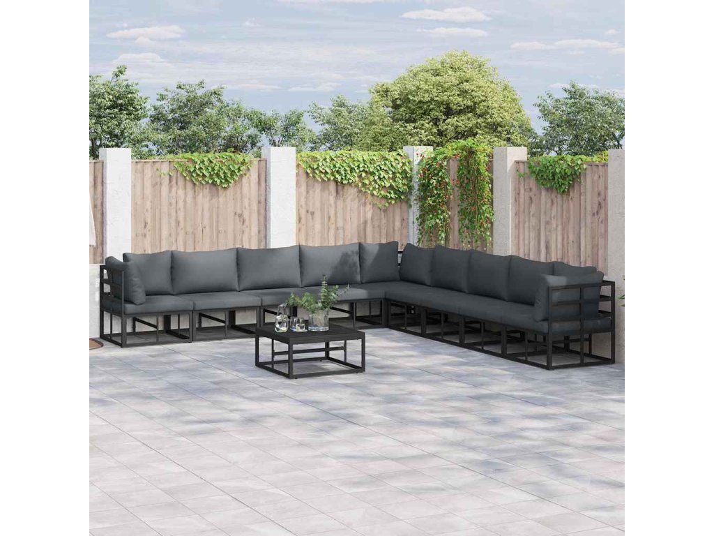 Tento zahradní pohovkový set je dokonalým spojením funkčnosti a moderní elegance, navržený pro ty, kteří si užívají venkovní život. S jeho jednoduchou a čistou formou nejenže zkrášluje, ale také zajišťuje pohodlí vašeho venkovního prostoru. Ať už pořádáte večírek nebo relaxujete s rodinou, modulární prvky tohoto setu umožňují přizpůsobenou konfiguraci podle vaší příležitosti. Antracitové polštáře vytvářejí šik kontrast proti pevnému černému hliníkovému rámu a harmonicky zapadají do zahradního a terasového prostředí.