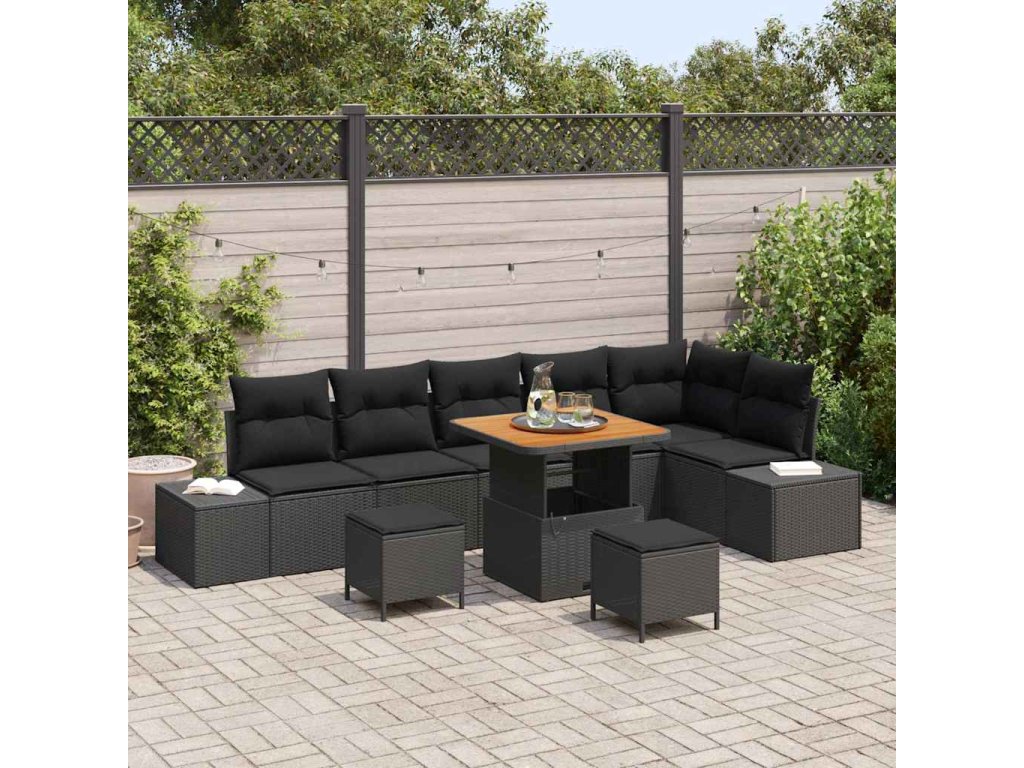 Sada zahradních pohovek s polštářem 9 pcs Černá Poly ratan 3362799
