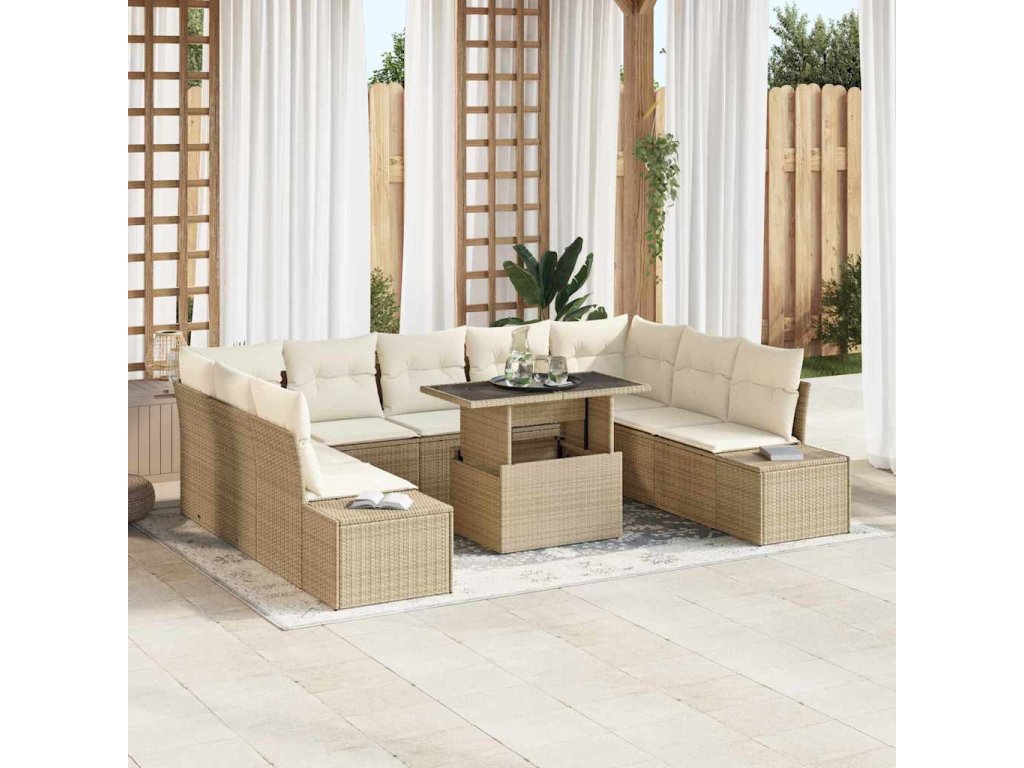 Sada zahradních pohovek s úložištěm 10 pcs Béžová Poly ratan 3357984