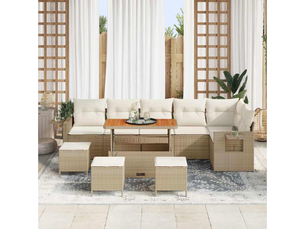 Sada zahradních pohovek s úložištěm 10 pcs Béžová Poly ratan 3363721