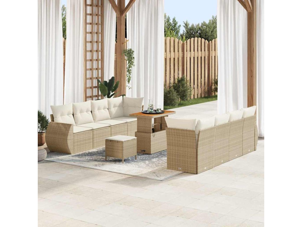 Sada zahradních pohovek s úložištěm 11 pcs Béžová Poly ratan 3363801
