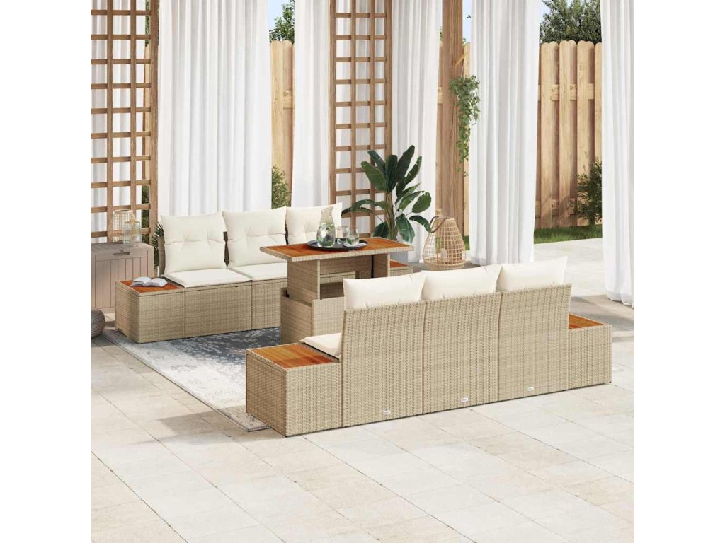 Sada zahradních pohovek s úložištěm 7 pcs Béžová Poly ratan 3358770