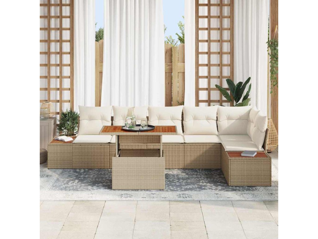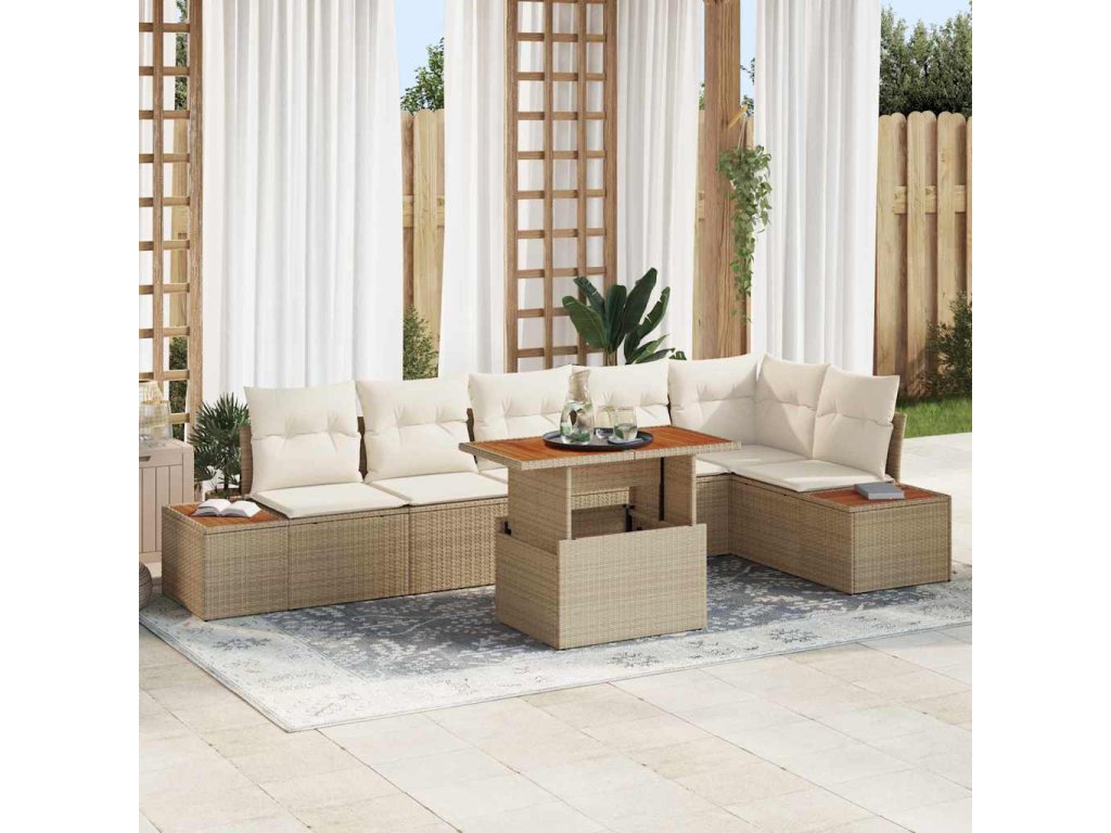 Sada zahradních pohovek s úložištěm 7 pcs Béžová Poly ratan 3358815