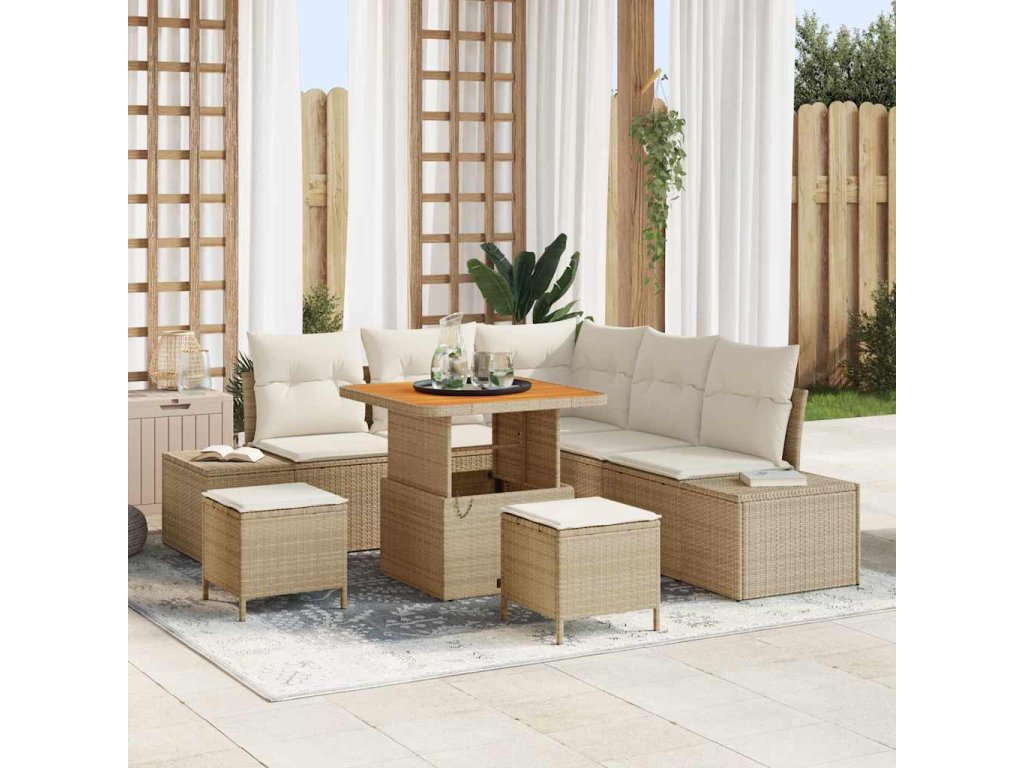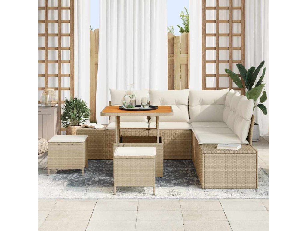 Sada zahradních pohovek s úložištěm 8 pcs Béžová Poly ratan 3364731