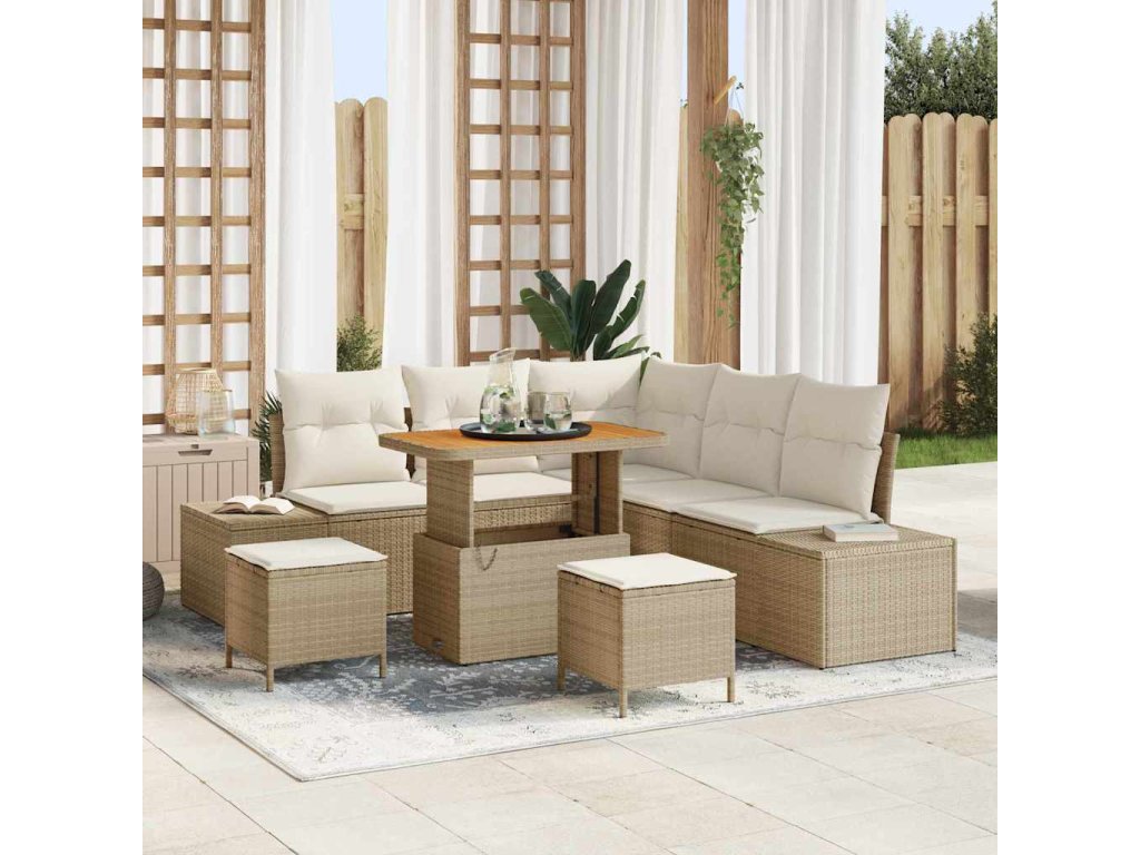 Sada zahradních pohovek s úložištěm 8 pcs Béžová Poly ratan 3364736