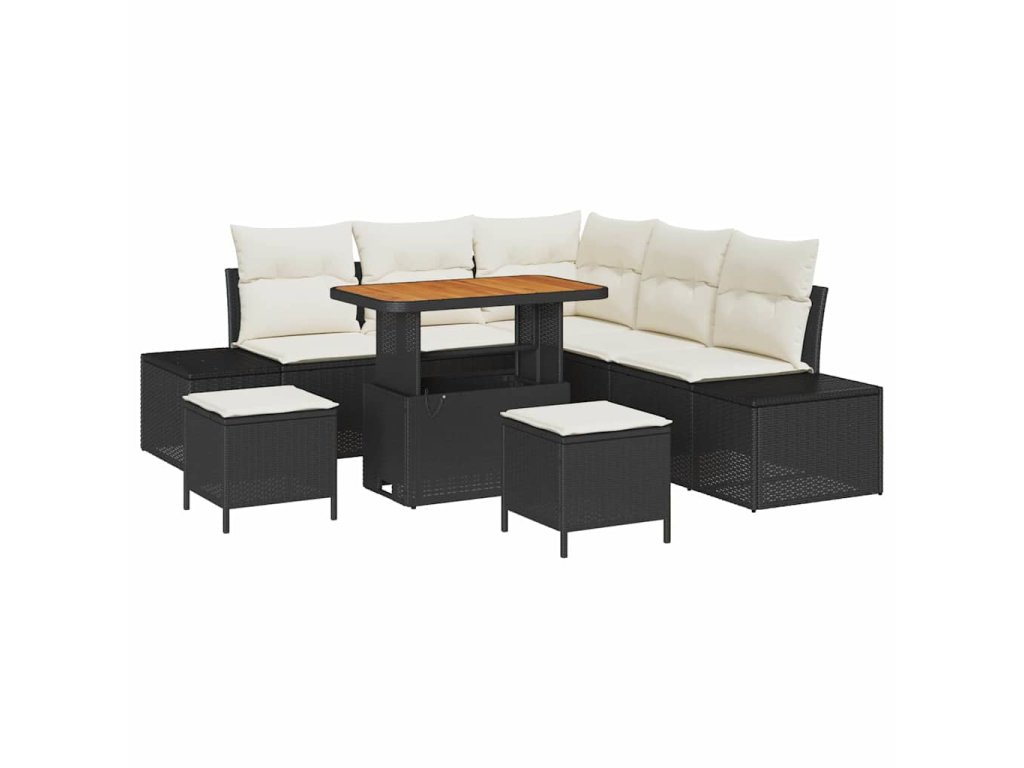 Sada zahradních pohovek s úložištěm 8 pcs Černá Poly ratan 3364735