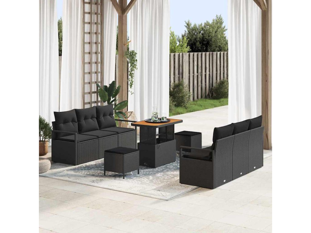 Sada zahradních pohovek s úložištěm 9 pcs Černá Poly ratan 3364429