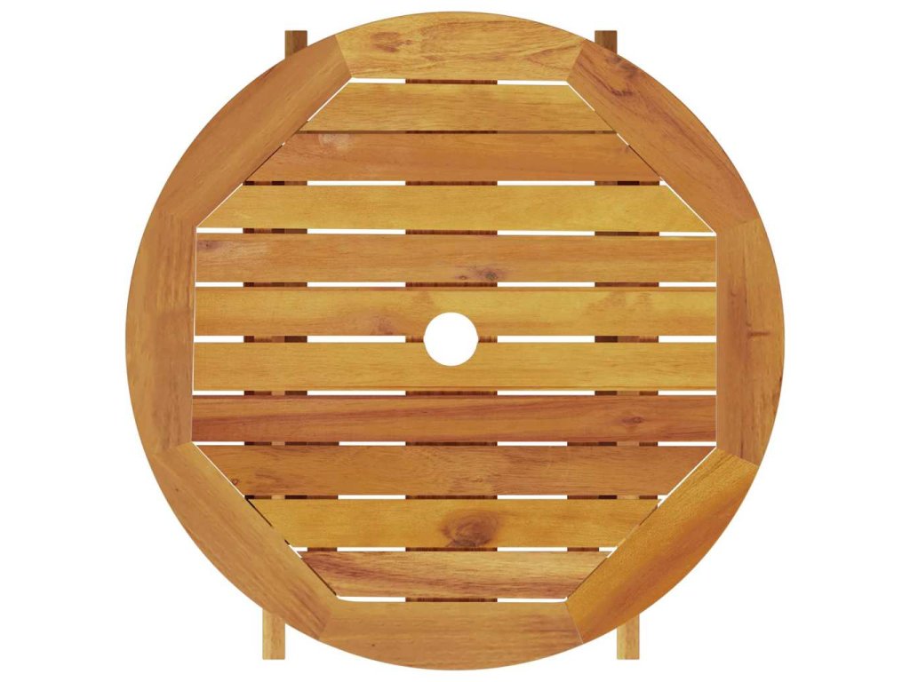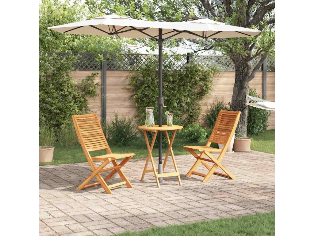 Tento rustikální skládací bistro set je super kombinace stylu a funkčnosti, což ho dělá ideálním pro oživení zahrad a teras. S jeho rustikálním kouzlem dodá lesk venkovním prostorům. Díky skládacímu designu se skvěle skladuje a pohybuje, hodí se do menších venkovních prostor a lehce se přemisťuje na akce. Je vyroben z pevného akáciového dřeva, a tak působí silně a je ideální na létání. Navíc má otvor pro slunečník, aby ti dodal extra stín v horkých dnech, což je stylové a užitečné pro venkovní brunch nebo večeře.