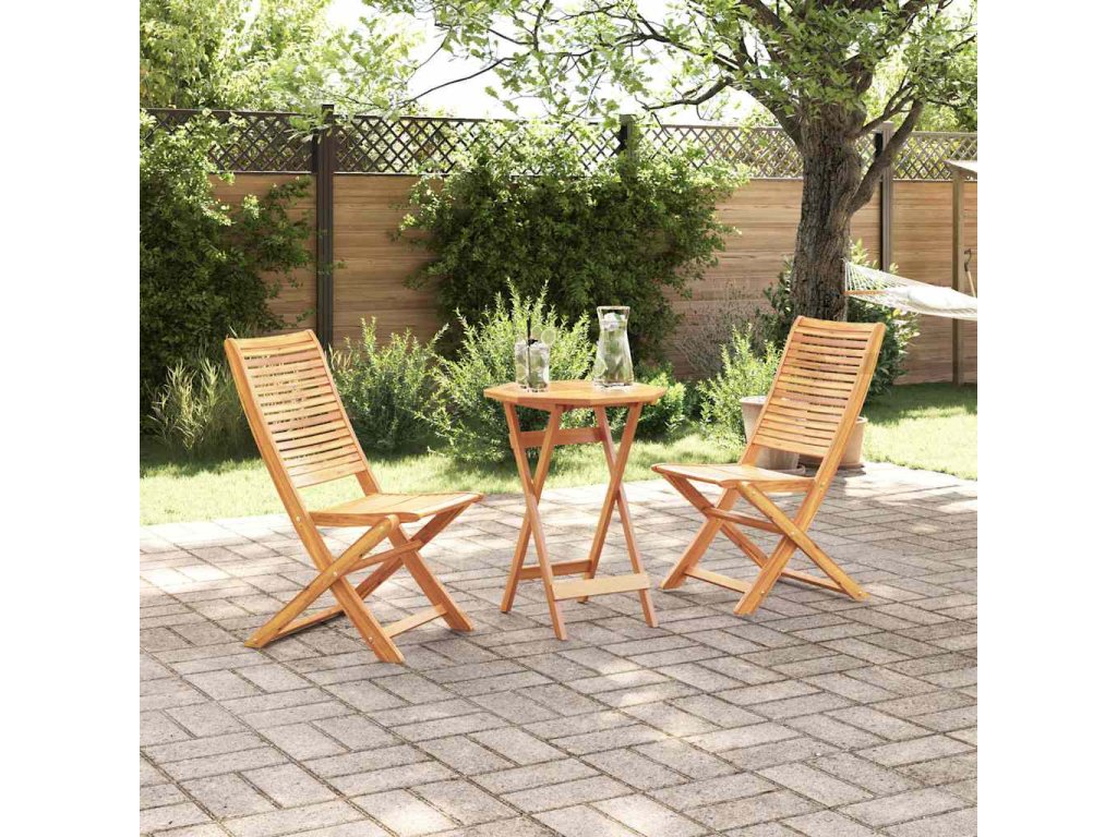 Tento rustikální skládací bistro set je super kombinace stylu a funkčnosti, což ho dělá ideálním pro oživení zahrad a teras. S jeho rustikálním kouzlem dodá lesk venkovním prostorům. Díky skládacímu designu se skvěle skladuje a pohybuje, hodí se do menších venkovních prostor a lehce se přemisťuje na akce. Je vyroben z pevného akáciového dřeva, a tak působí silně a je ideální na létání. Navíc má otvor pro slunečník, aby ti dodal extra stín v horkých dnech, což je stylové a užitečné pro venkovní brunch nebo večeře.