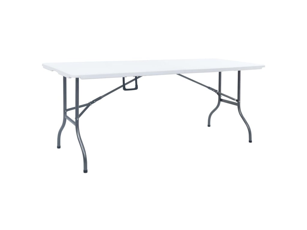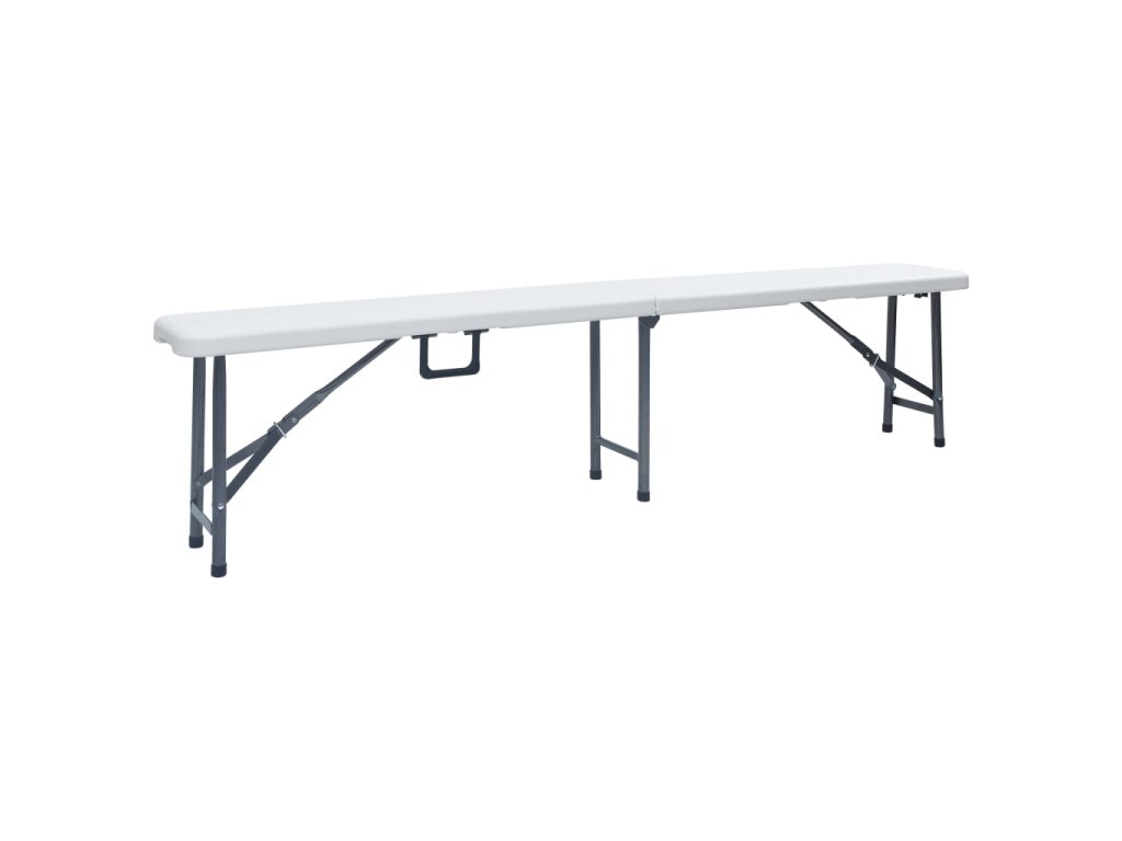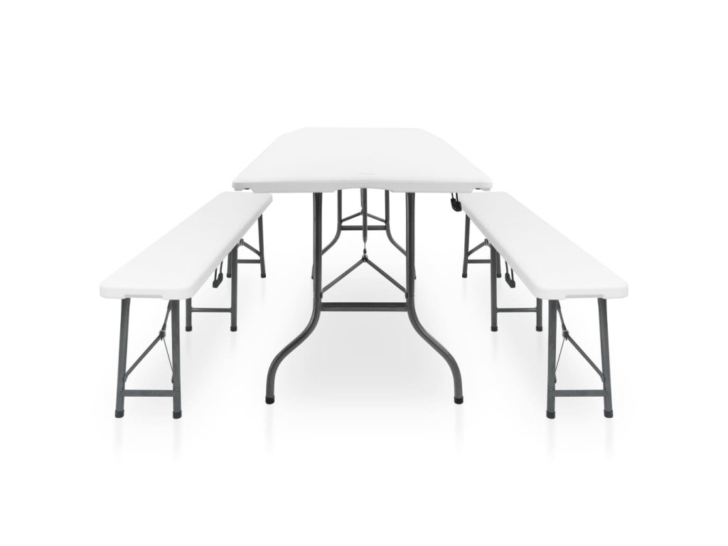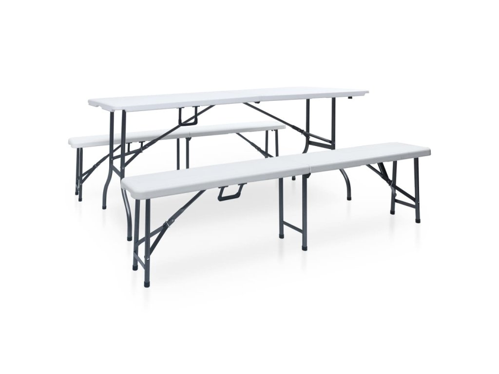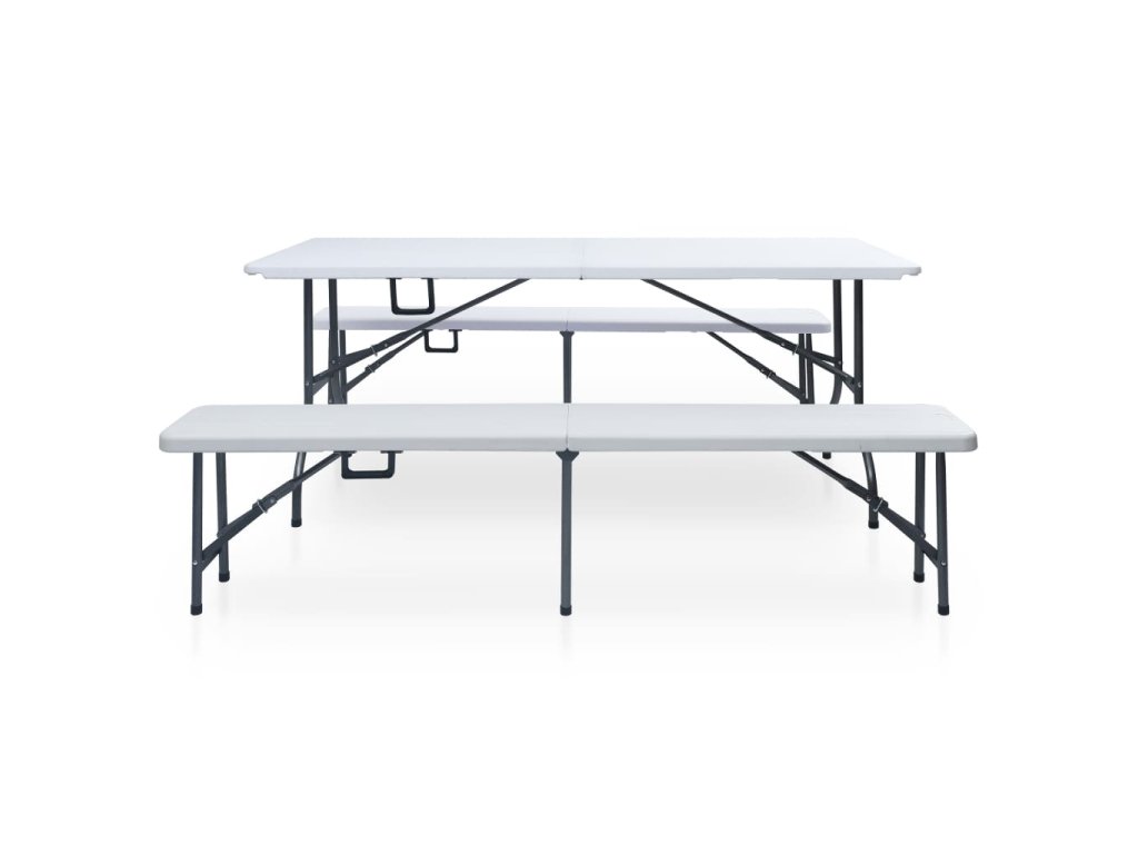 Skládací zahradní stůl se 2 lavicemi 180 cm ocel a HDPE bílý 48833