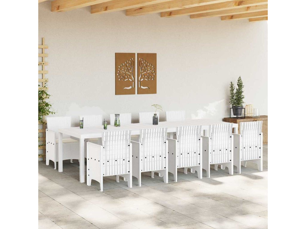 Zahradní jídelní souprava 11 pcs Bílá Poly ratan a ocel 3378766