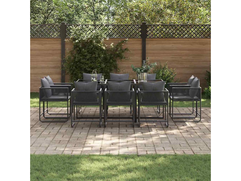 Zahradní jídelní souprava 11 pcs Černá Ocel 3335884