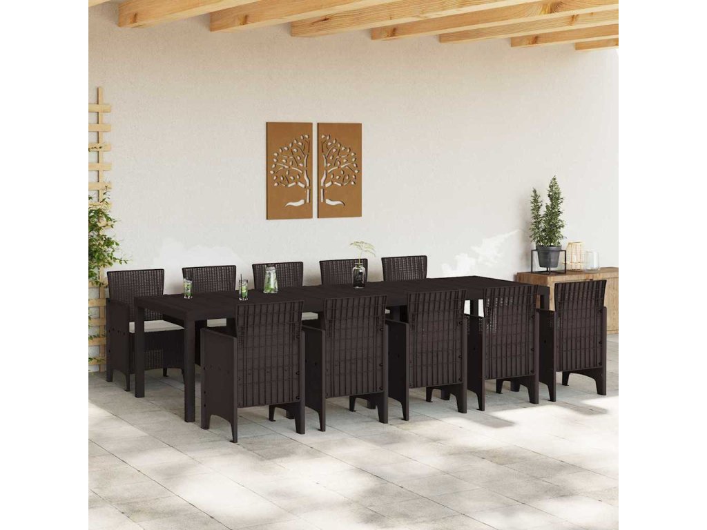 Zahradní jídelní souprava 11 pcs Hnědá a krémová Ratan 3378761