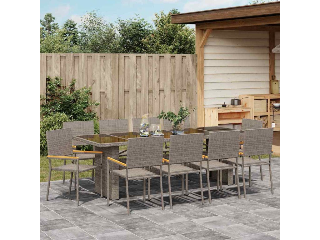 Zahradní jídelní souprava 11 pcs Šedá Poly ratan 3365418