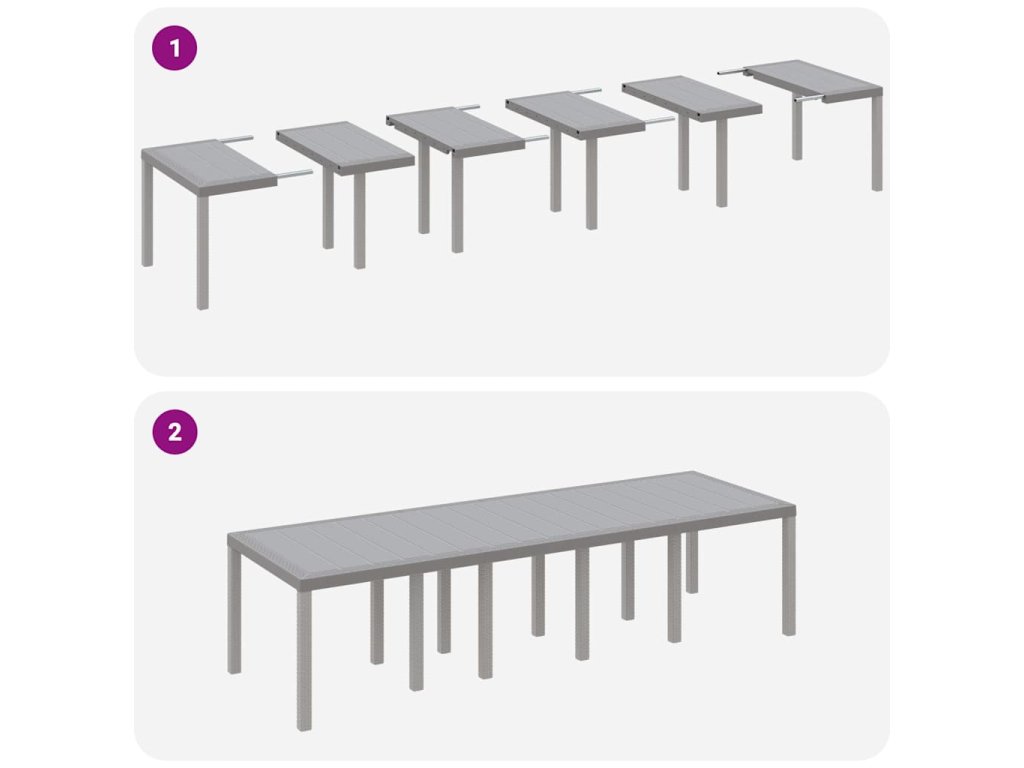 Tento venkovní jídelní set s ergonomickým designem spojuje jednoduchost a funkčnost moderního nábytku a láká na venkovní stravování. Vytvořen speciálně pro zahrady a terasy, zve rodinu a přátele k relaxaci a venkovnímu hodování v teplých letních dnech. Obdélníková konfigurace setu s hladkým povrchem a matným finišem dodává nádech elegance jakémukoliv venkovnímu prostoru. Díky ergonomickému designu je sezení pohodlné, ideální pro dlouhé diskuse a uvolněné večeře pod sluncem. Poly ratanové materiály v kombinaci s moderním stylem dělají z setu středobod vaší zahrady.