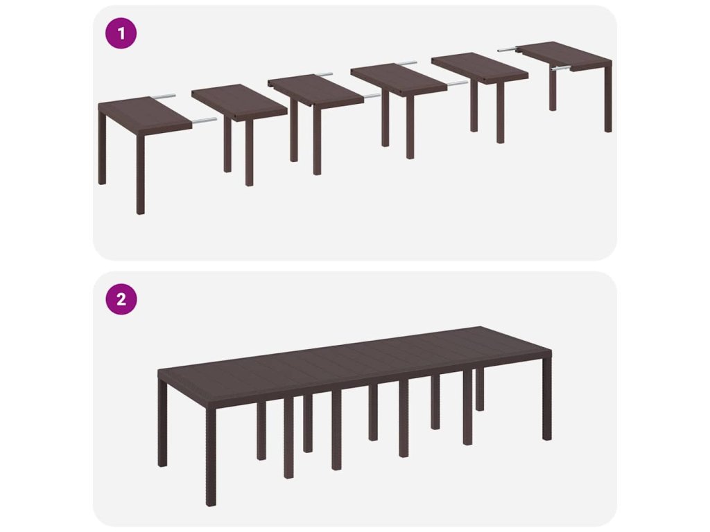 Tento venkovní jídelní set s ergonomickým designem spojuje jednoduchost a funkčnost moderního nábytku a láká na venkovní stravování. Vytvořen speciálně pro zahrady a terasy, zve rodinu a přátele k relaxaci a venkovnímu hodování v teplých letních dnech. Obdélníková konfigurace setu s hladkým povrchem a matným finišem dodává nádech elegance jakémukoliv venkovnímu prostoru. Díky ergonomickému designu je sezení pohodlné, ideální pro dlouhé diskuse a uvolněné večeře pod sluncem. Poly ratanové materiály v kombinaci s moderním stylem dělají z setu středobod vaší zahrady.