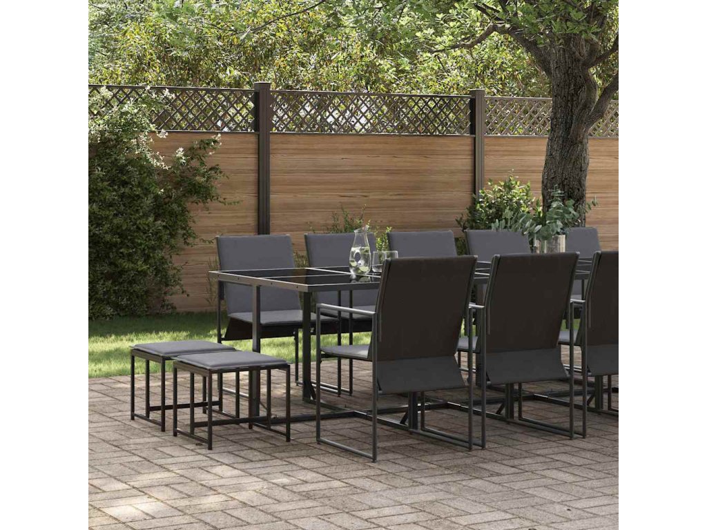 Zahradní jídelní souprava 15 pcs Černá Ocel 3335866