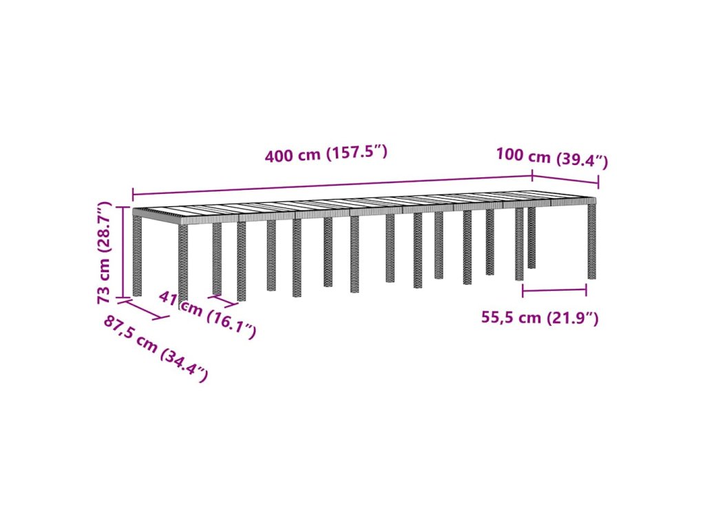 Tento moderní zahradní jídelní set perfektně doplňuje současné venkovní prostory se svou hladkou texturou a neprůhledným povrchem. Navržený pro univerzálnost, set nabízí elegantní obdélníkový tvar a dostatek místa pro shromáždění na terasách nebo zahradách. NepřReflectivní matný povrch dodává skromnou eleganci, což zajišťuje, že se dokonale hodí do jakéhokoli moderního prostředí.