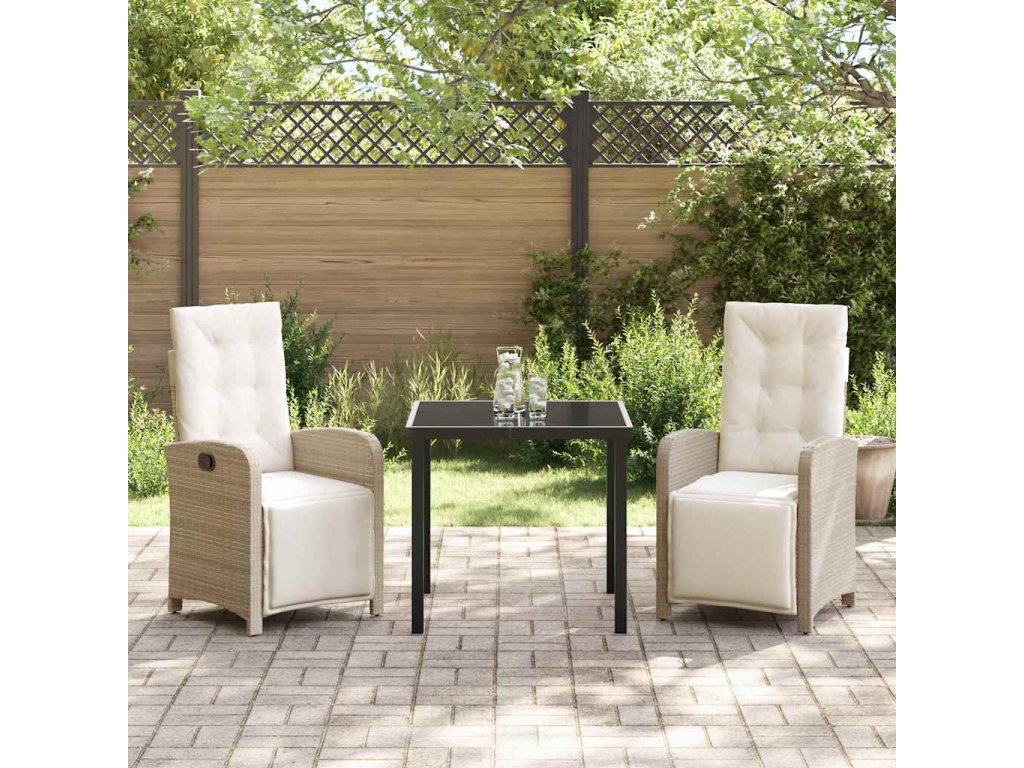 - Kvalitní materiály: Tento set je vyrobený z prvotřídního poly ratanu, co je špičkový a odolný vůči počasí, takže je ideální pro venkovní použití. Skleněné desky dodají kousek elegance a snadno se čistí.