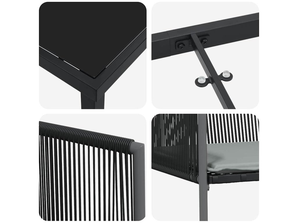 - Univerzální využití: Ať už pořádáte letní grilování nebo si užíváte klidnou snídani, tento set se skvěle přizpůsobí různým příležitostem. Jeho univerzální povaha se hodí k širokému spektru venkovních lokalit, od prostorných teras po kompaktní balkony. Užijte si moderní, sofistikovanou atmosféru, kterou přináší do jakéhokoli prostředí.