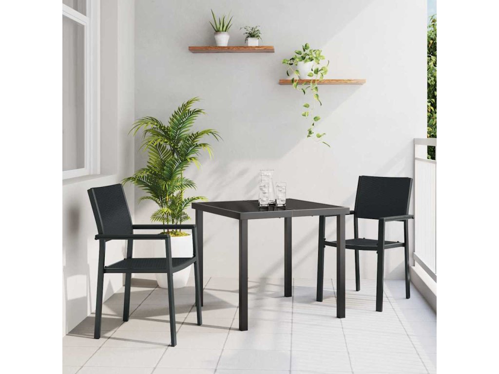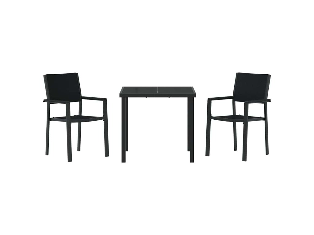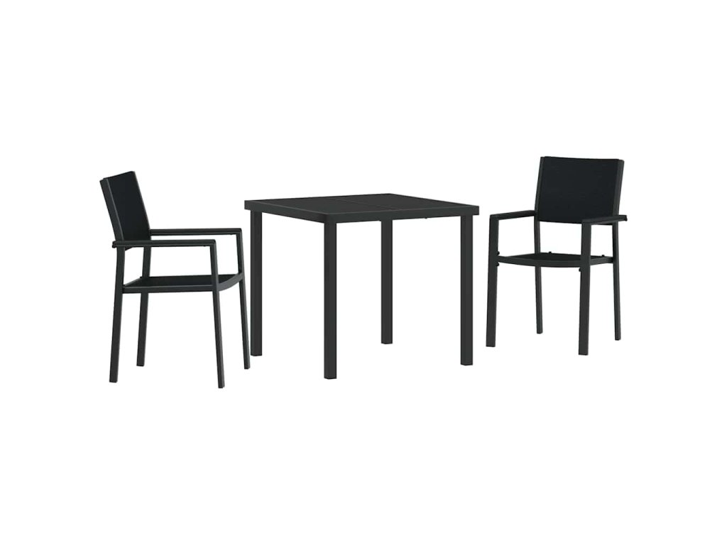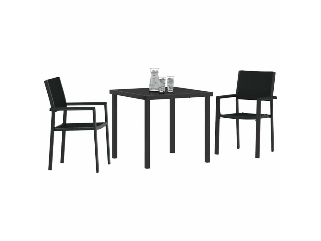 Tato moderní zahradní jídelní souprava je navržena pro ty, kteří si cení jak stylu, tak funkčnosti ve svých venkovních prostorách. S elegantním a moderním vzhledem se tato jídelní souprava bez problémů integruje do jakékoliv moderní zahrady nebo terasy, a nabízí dokonalé místo pro neformální obědy, večeře při západu slunce nebo pohodové kávové přestávky. Bohatý odstín práškově lakovaného černého rámu vytváří elegantní pozadí pro jakoukoli příležitost, poskytující stylovou a přívětivou atmosféru ideální pro letní setkání s přáteli nebo rodinou.