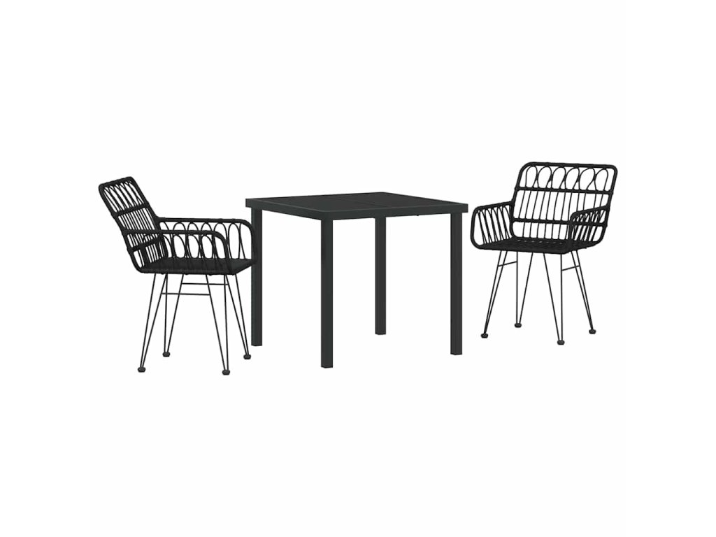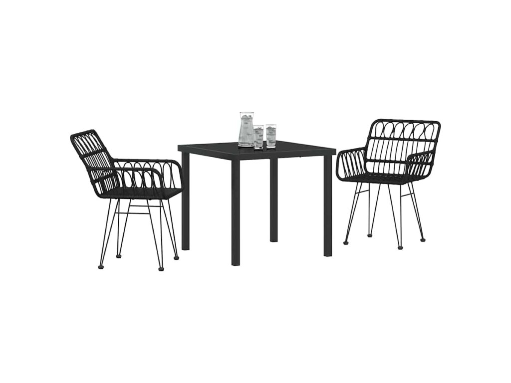 Zahradní jídelní souprava 3 pcs Černá Poly ratan 3379184