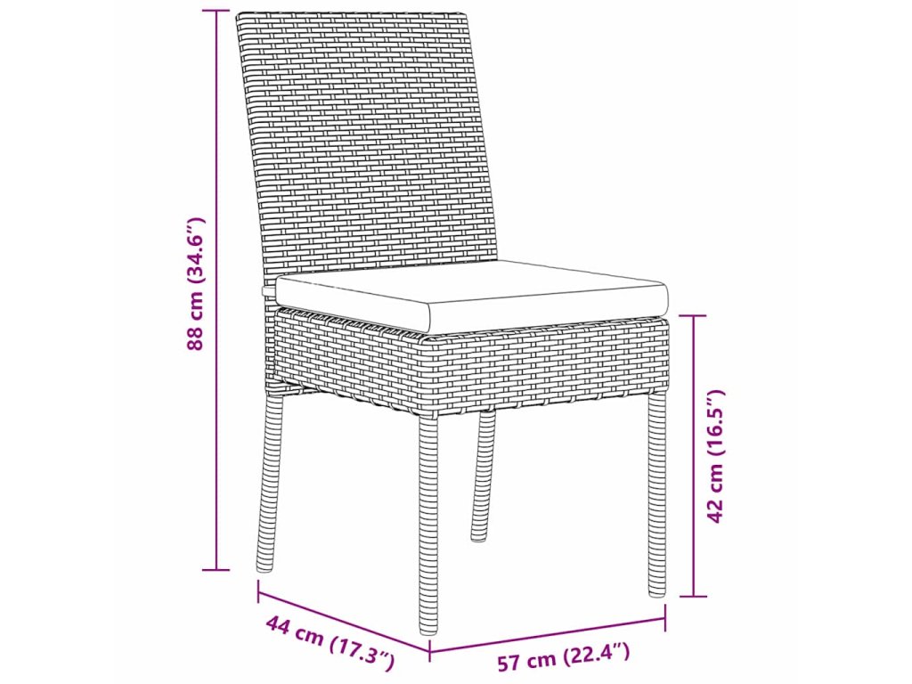 - Materiály: Tato zahradní souprava je vyrobená z polyratanu, který klade důraz na eleganci a funkčnost. Tkaná textura a UV-odolnost jí umožňují zvládnout venkovní podmínky. Práškově lakovaná ocel dodává stabilitu, která odolá každodennímu používání. Společně tvoří odolný produkt, který vypadá skvěle a je super praktický pro venkovní stolování.