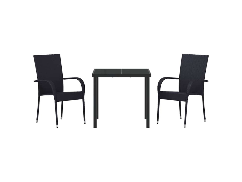 Zahradní jídelní souprava 3 pcs Černá Poly ratan 3379401