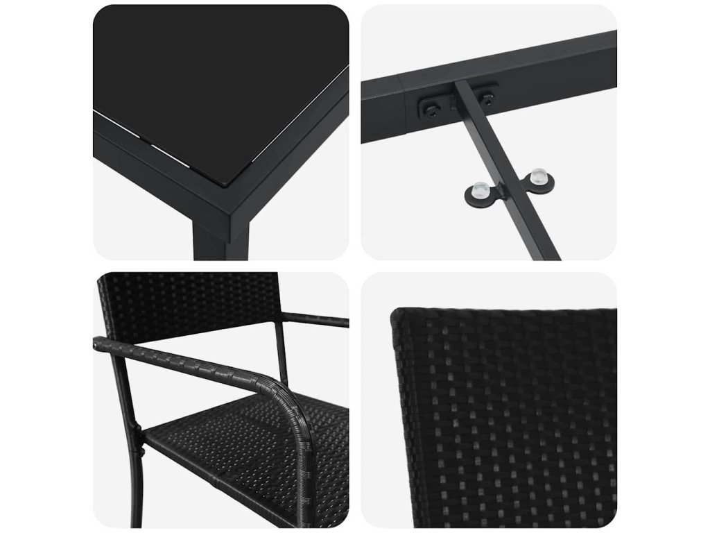 Zahradní jídelní souprava 3 pcs Černá Poly ratan 3380036