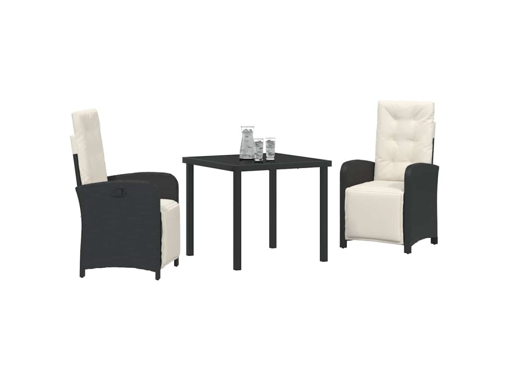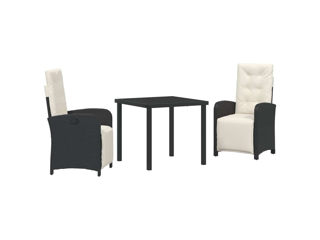 Zahradní jídelní souprava 3 pcs Černá polyratan 3380302