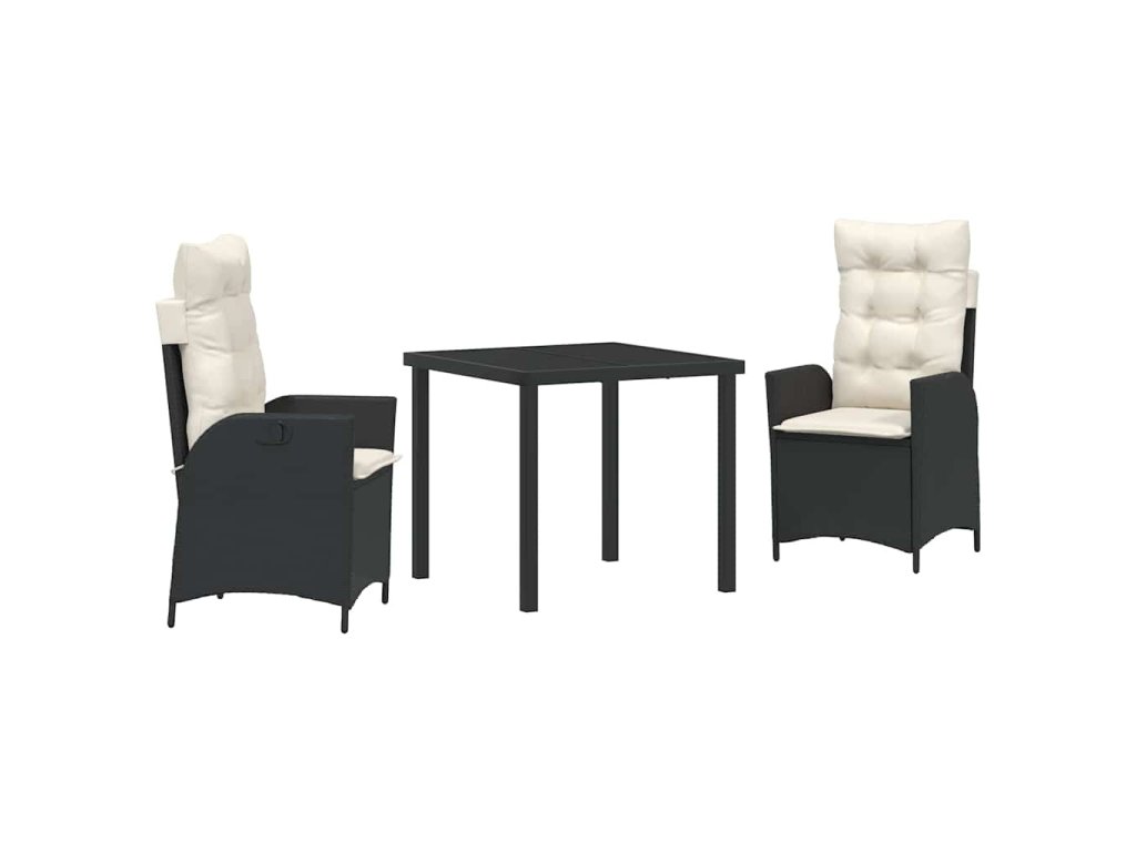 Zahradní jídelní souprava 3 pcs Černá polyratan 3380477