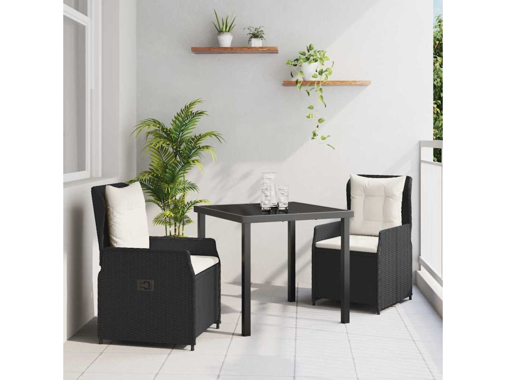 Zahradní jídelní souprava 3 pcs Černá polyratan 3380939