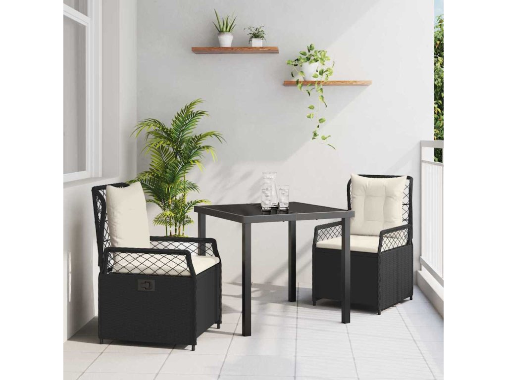 Zahradní jídelní souprava 3 pcs Černá polyratan 3380981