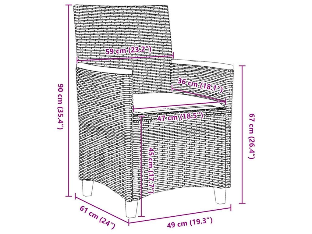 - Materiály: Jídelní set je vyrobený z odolného poly ratanu, který vydrží veškeré počasí. Můžete si tak v klidu užívat venku bez stresu z údržby, a to dá víc času na relaxaci.
