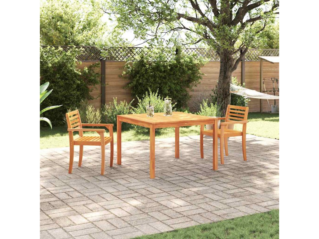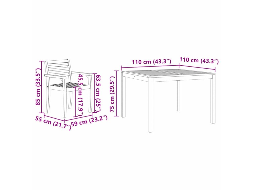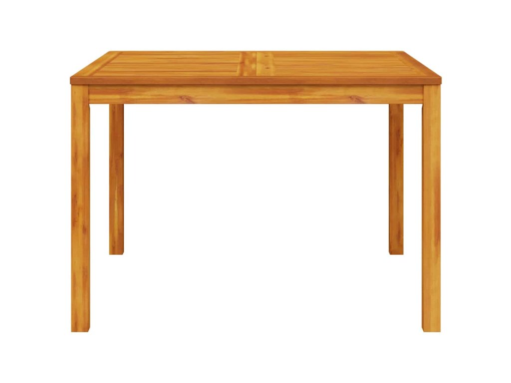 - Masivní akáciové dřevo: Jídelní set je zcela vyroben z masivního akáciového dřeva, které je známé pro svou silnou, hustou strukturu, zajišťující dlouhodobou trvanlivost a vynikající odolnost vůči venkovním podmínkám. Tato robustnost činí set ideálním pro trvalé venkovní používání a zachovává přitom svou přirozenou eleganci.