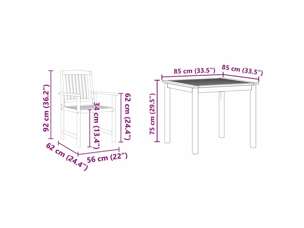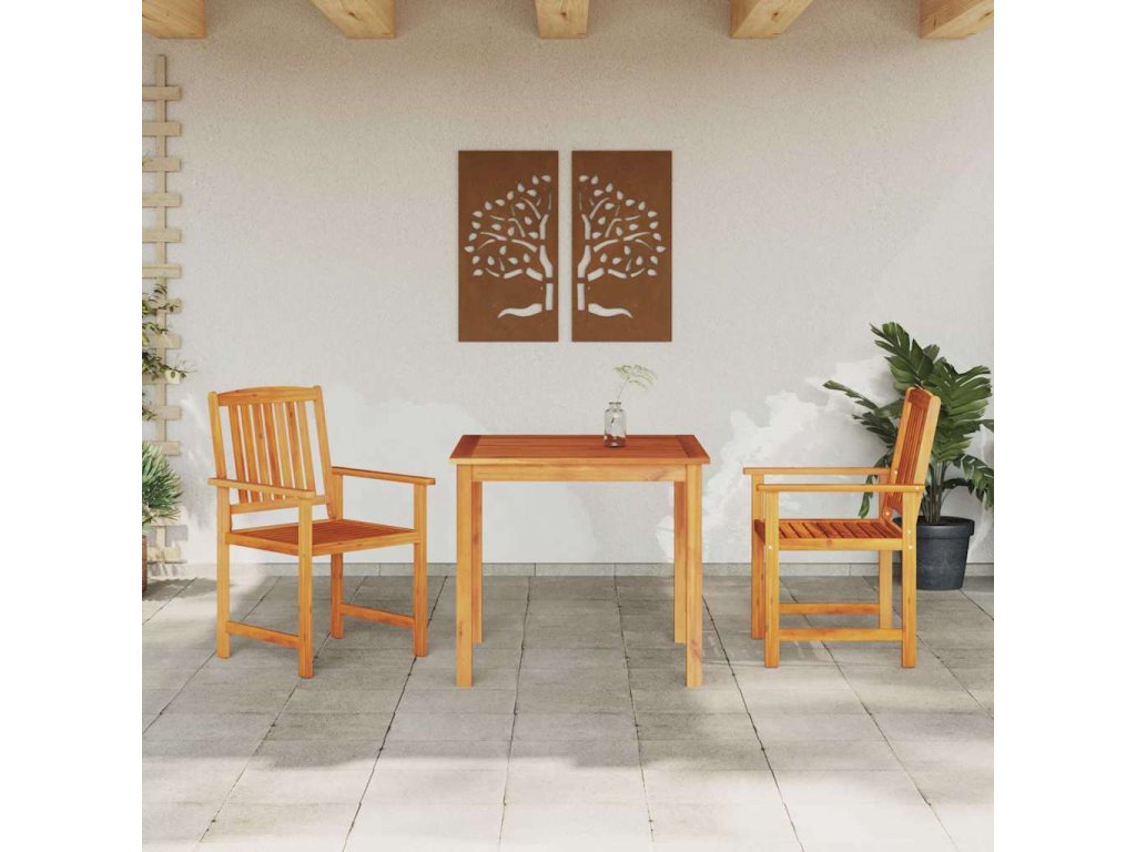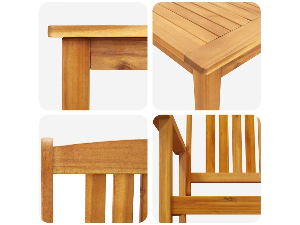 - Vyrobeno z masivního akáciového dřeva: Zdůrazňující přírodní krásu a odolnost, tato souprava je vyrobena z masivního akáciového dřeva. Známo svou tvrdostí a odolností, dřevo předvádí nádherný vzor zrnění, což dodává rustikální nádech vaší zahradě. Jeho olejovaný povrch zajišťuje zvýšenou odolnost vůči vlhkosti a každodennímu opotřebení, což z něj činí spolehlivou volbu pro dlouhodobé venkovní používání.