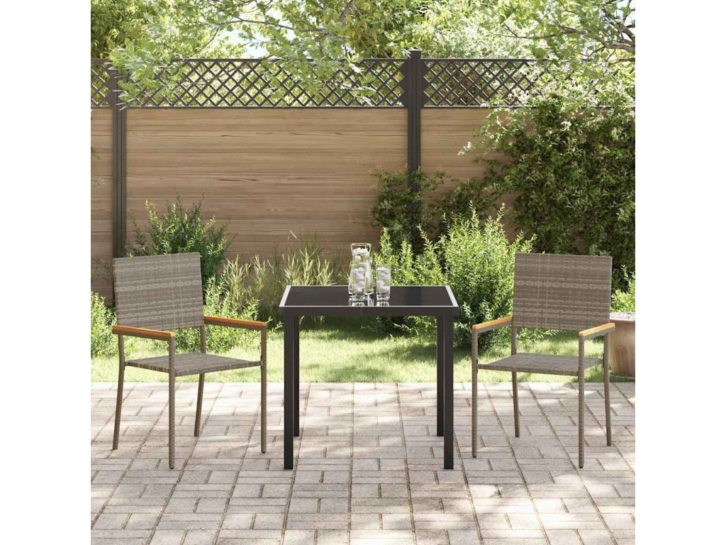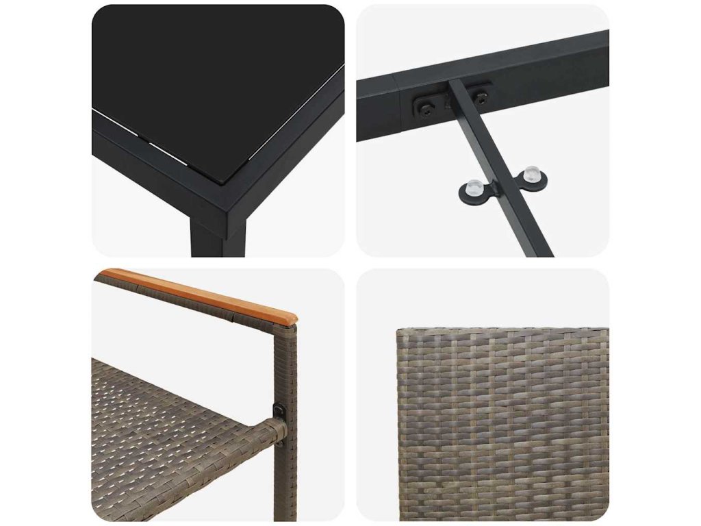 - Součásti: Každý kousek má poly ratanové opěrky, ocelové rámy a tvrzené skleněné desky, což zajišťuje, že všechno vypadá skvěle a dlouho vydrží. Pevné akáciové dřevěné opěrky na ruce dodávají příjemný dotek a pohodlí.