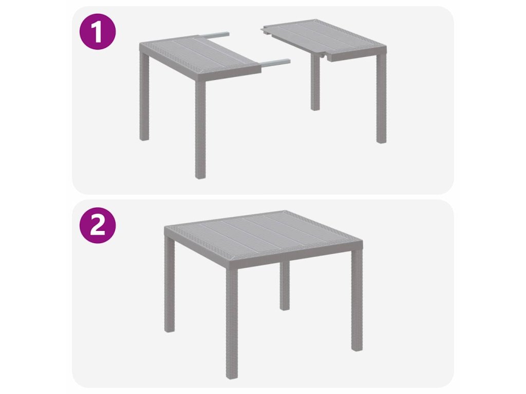 Tento moderní zahradní jídelní set přináší sofistikovanost a funkčnost do různých venkovních prostor. Ideální pro venkovní stolování na terase nebo v zahradě, tento set spojuje elegantní linie s texturovaným povrchem, aby poskytl stylový zážitek při jídle. Skvělý pro letní setkání a venkovní stolování, tento set nabízí pohodlí a pohodlné posezení, včetně polštářů pro každý sedák. Čtvercový stůl a odpovídající židle snadno doplní moderní designy, poskytují elegantní a zároveň neformální prostředí pro rodinné jídla nebo společenská setkání.