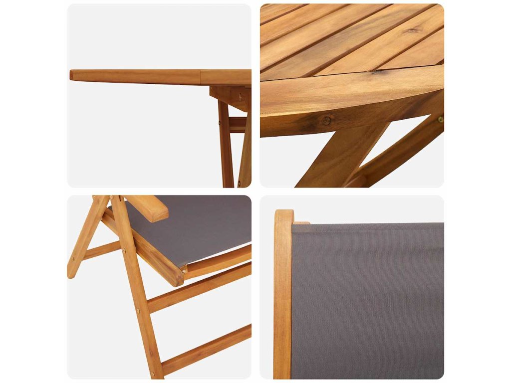- Akátové dřevo: Užijte si robustní a výjimečnou kvalitu, kterou poskytuje solidní akátové dřevo, známé svou přírodní krásou a odolností. Přirozená UV odolnost dřeva zajišťuje dlouhověkost proti ostrému slunečnímu záření, což z něj dělá ideální volbu pro venkovní prostory. Tato odolnost slibuje, že vaše dining zkušenost zůstane kouzelná a stálá napříč sezónami.