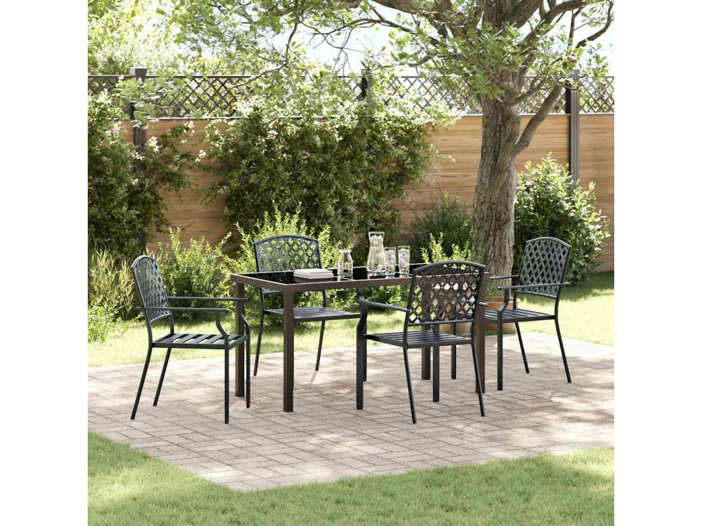 - Materiály: Většina této jídelní soupravy je vyrobená z práškově lakované oceli, takže je odolná a rezistentní proti rzi. Temný antracitový povrch ji dodává stylový vzhled, který se hodí do jakékoli moderní venkovní oblasti.