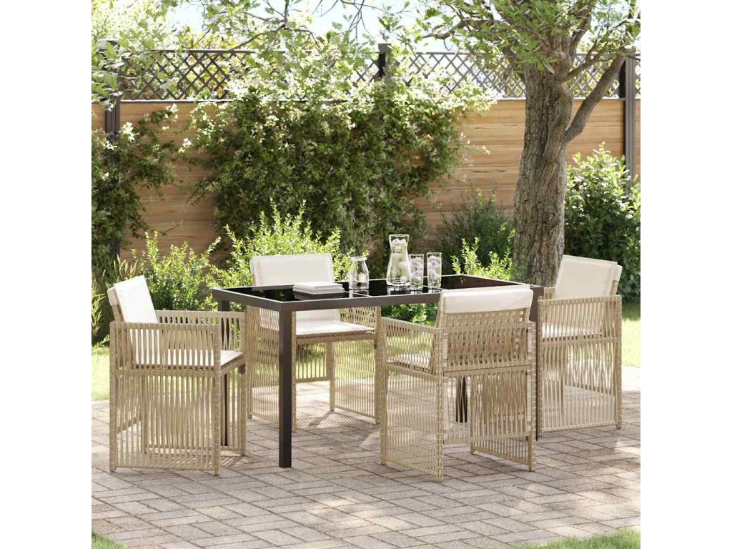 Zahradní jídelní souprava 5 pcs Béžová Poly ratan 3380662