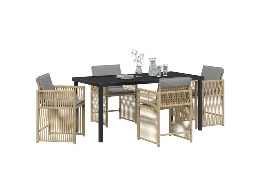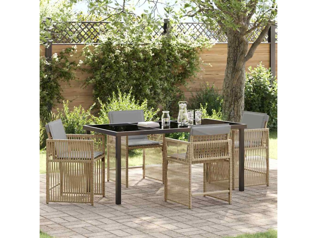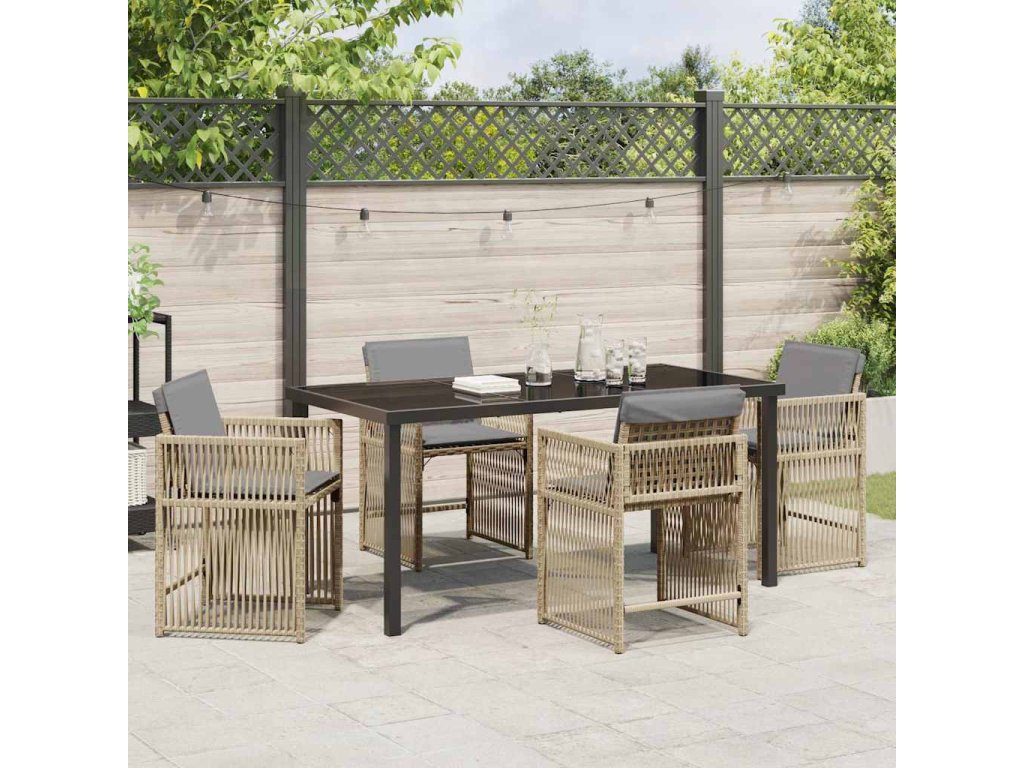 - Součásti: Sada obsahuje elegantní skleněný stůl, suitable for co se snadno čistí po jídle. Má pohodlná opěradla a opěrky z poly ratanu navržené pro lepší oporu během uvolněných večeří. Pevné nohy ti zaručí stabilitu na různých površích, zatímco měkké polyesterové výplně přidávají pohodlí během každého jídla.