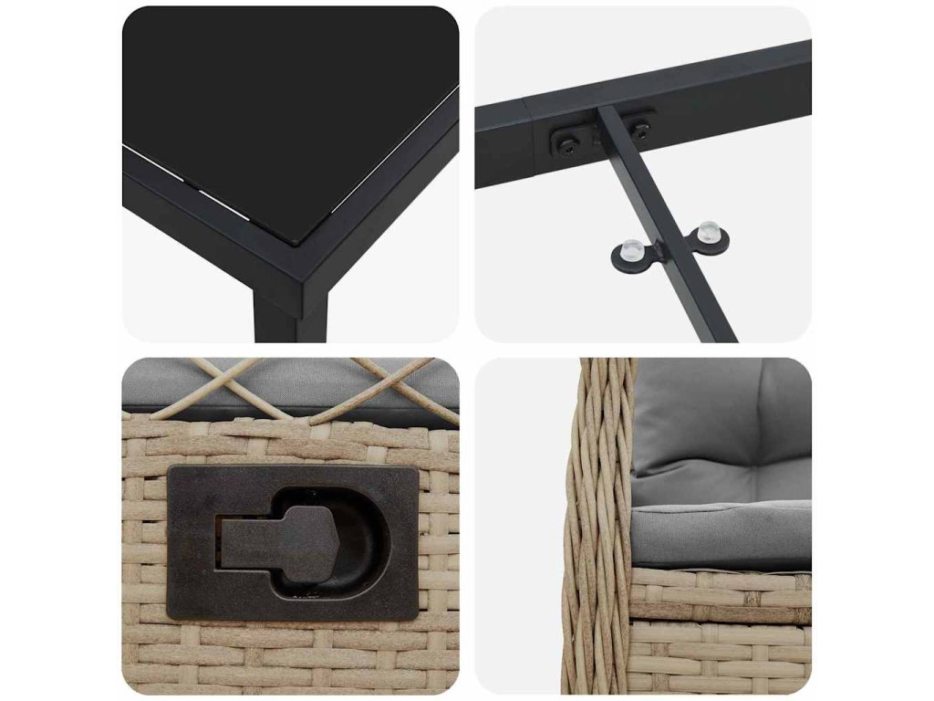 - Materiál konstrukce: Tato zahradní jídelní sada je vyrobená z top polyratanu, který je super odolný a vhodný pro venkovní použití. Silný ocelový rám ji zpevňuje a vypadá fakt dobře.