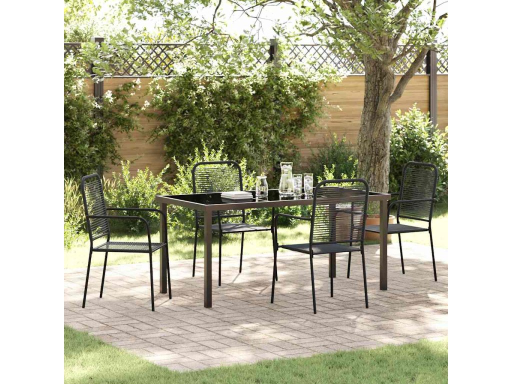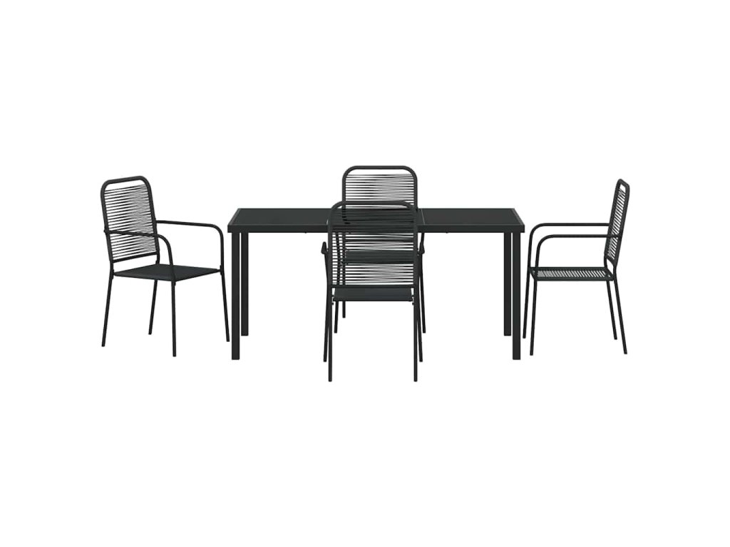 Zahradní jídelní souprava 5 pcs Černá Bavlněný provaz a ocel 3379159