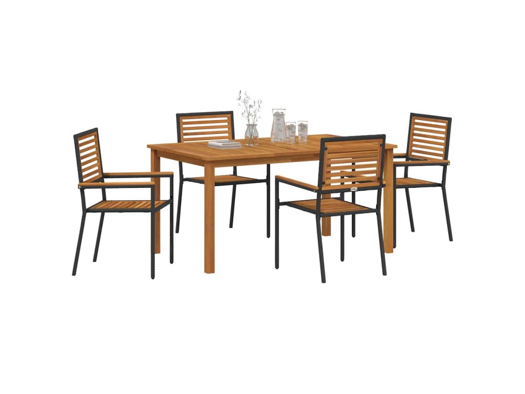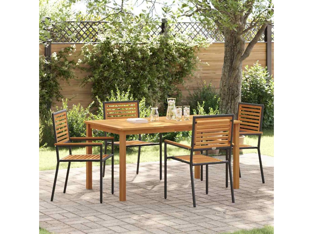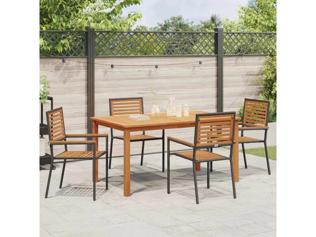 - Zahrnuté komponenty: Set obsahuje pohodlné opěrky na ruce z poly ratanu a pevné práškově lakované ocelové nohy pro odolnost a podporu. Snadno se stohuje, když ho nepoužíváš, ideální pro udržení pořádku, zvlášť při menším prostoru. n