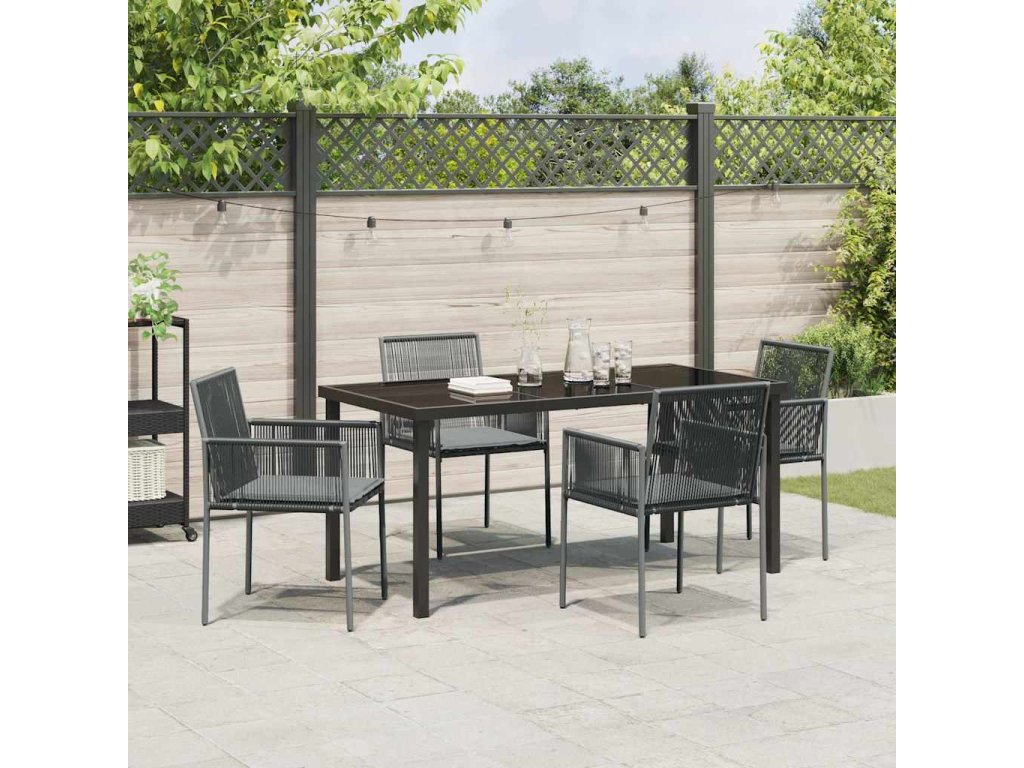 - Funkční komponenty: Set obsahuje tvrzené sklo, které nabízí elegantní a přitom pevný povrch pro stolování. Každá židle je vybavena polyesterovým polštářem se zipem, což umožňuje snadné čištění jednoduše odstraněním potahu. Pečlivě navržené poly ratanové opěrky a opěradla nabízejí pohodlí a styl, což každé sezení dělá příjemné.