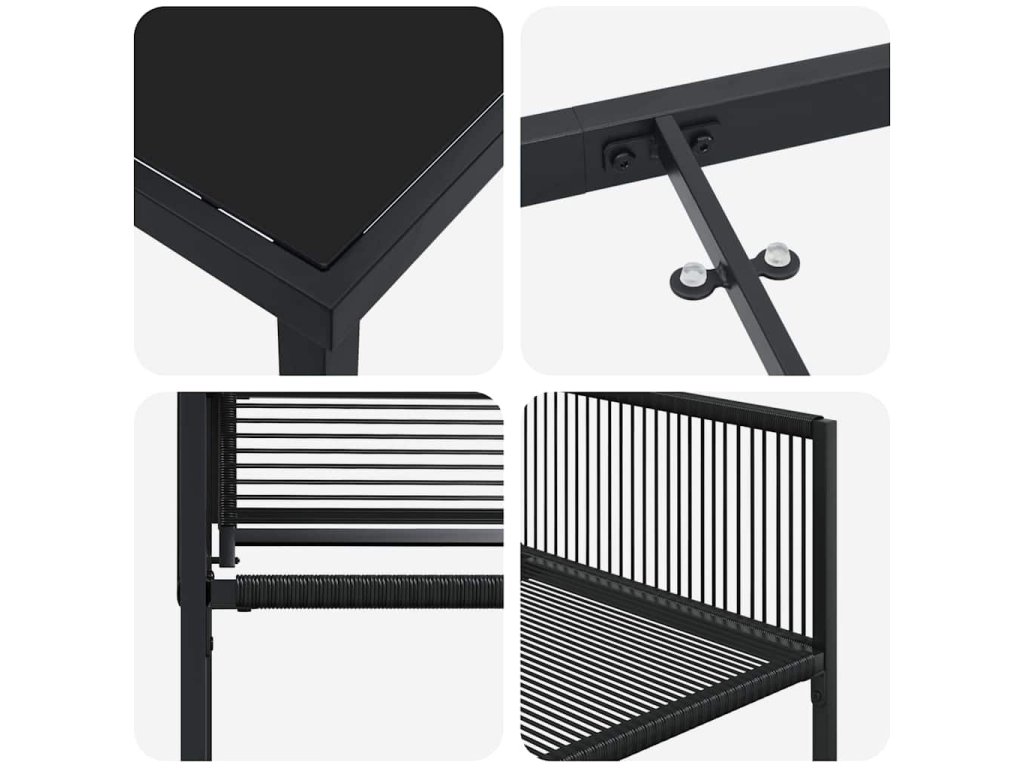 - Odolná Konstrukce S práškově lakovaným ocelovým rámem a poly ratanovým materiálem, tento set odolává nepříznivým povětrnostním podmínkám. UV ochrana poskytuje ochranu před slunečním světlem, zajišťující, že set si zachová svůj vzhled v průběhu času, zatímco práškový lak dodává vrstvu trvanlivosti proti opotřebení.